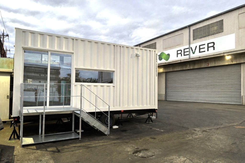 こちらのトレーラーハウスは、建屋建て替え工事の仮設事務所としてご活用いただいております。