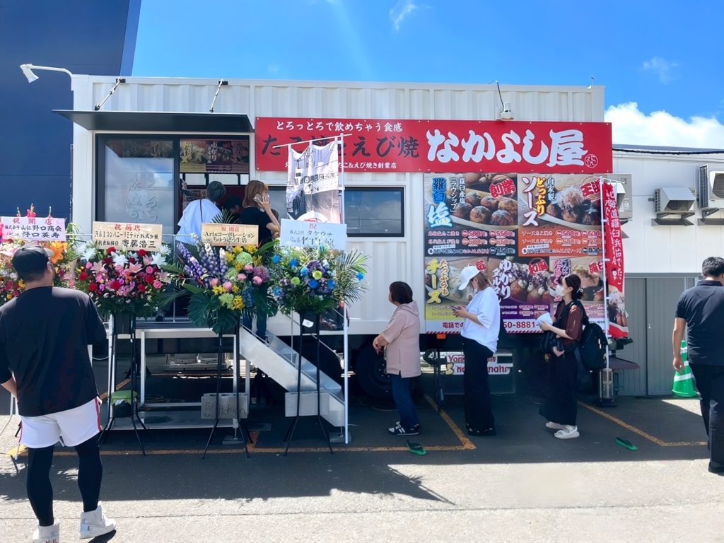 2025年8月8日にスーパーセンタートライアル別保店駐車場内にBIBox Moving ShoPでのたこ焼きとえび焼きのお店、「たこ焼きなかよし屋釧路別保店」をオープンしました!